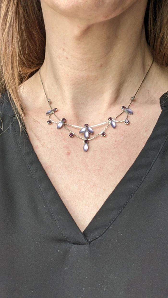 Parure argentée et violet Collier et boucles d'oreilles. - photo numéro 7
