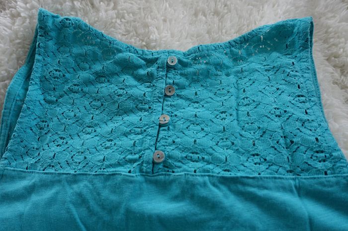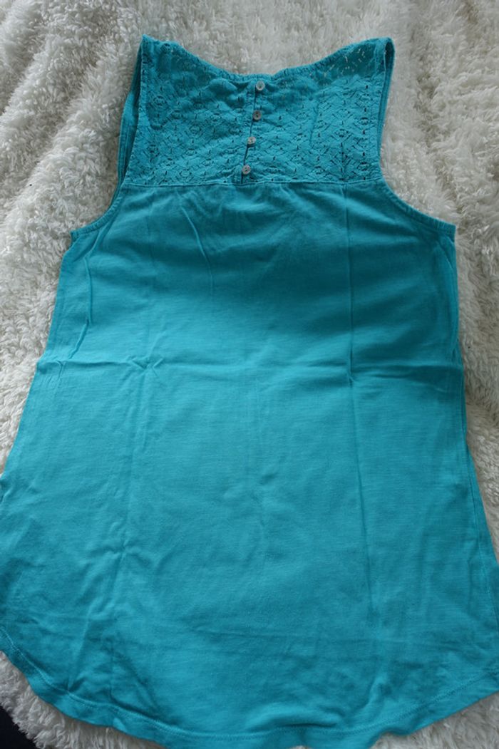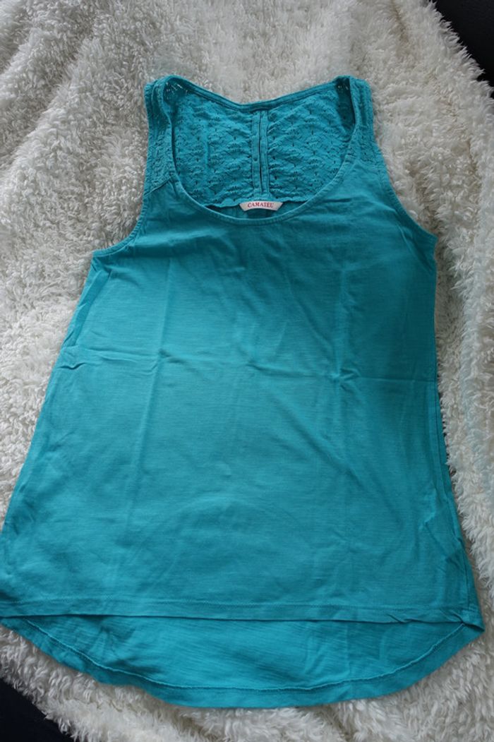 Débardeur Taille M Camaïeu Finition haut du dos et épaules dentelle Vert-bleu Très peu porté, très bon état