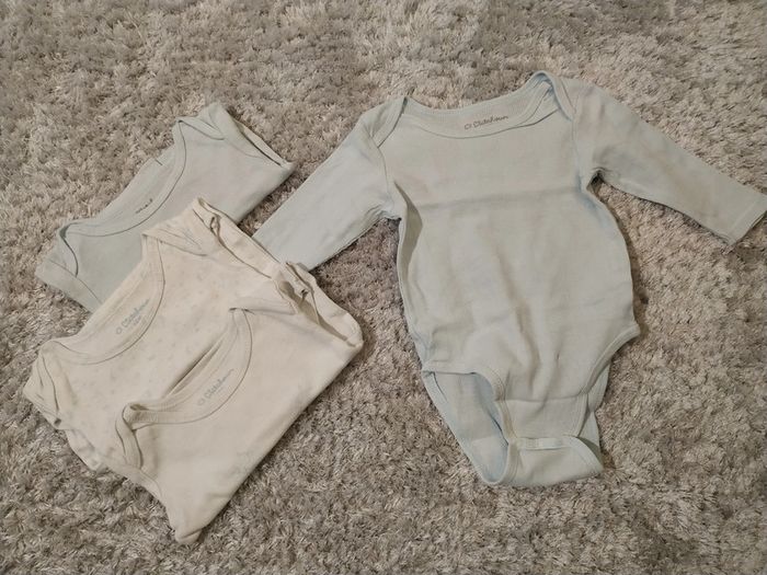 4 bodies manches longues Kitchoun Blanc et bleu Ciel 12 mois 74 cm - photo numéro 1