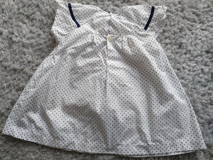 Robe Blanche pois bleus marines Sucre d'orge 12 mois 74 cm - photo numéro 3