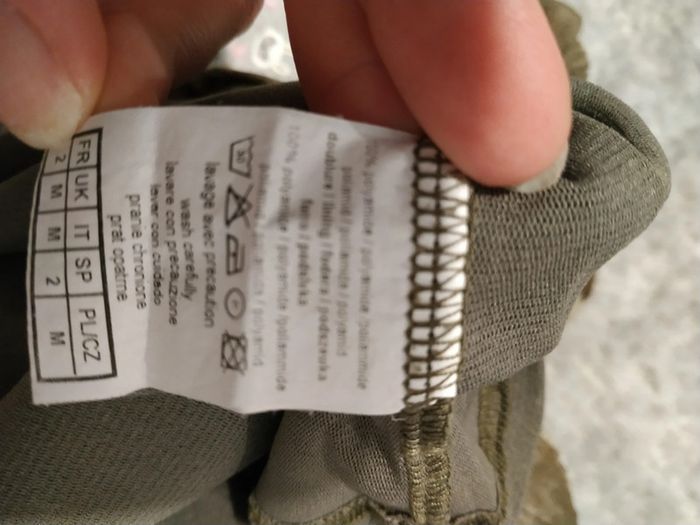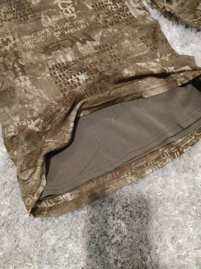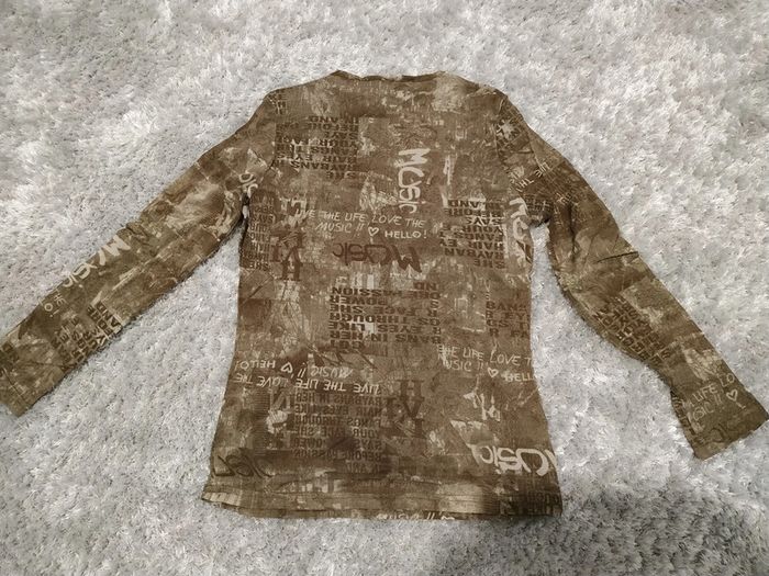 Tee-shirt Camaïeu manches longues Taille 2 / M Kaki avec inscriptions Doublé coton mais pas manches. Très bon état