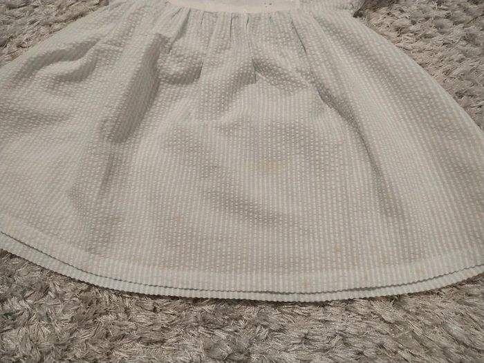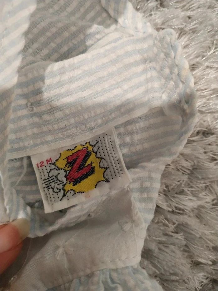 Robe bleue et blanche Z 12 mois Tâches jaunies, un élastique plus lâche sur une manche