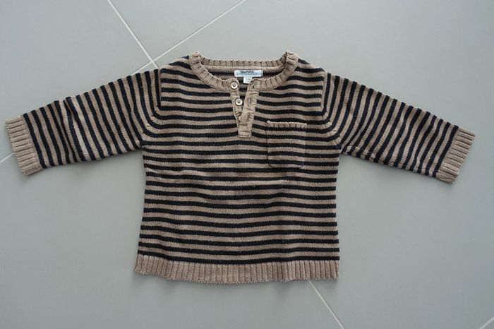 Pull rayé Marron rayé noir Vertbaudet 12 mois 74 cm