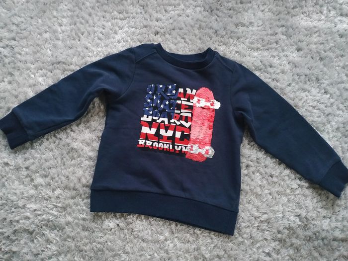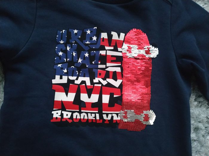 Sweat pull Vertbaudet Skate paillettes réversibles Bleu marine NYC 4 ans 102 cm