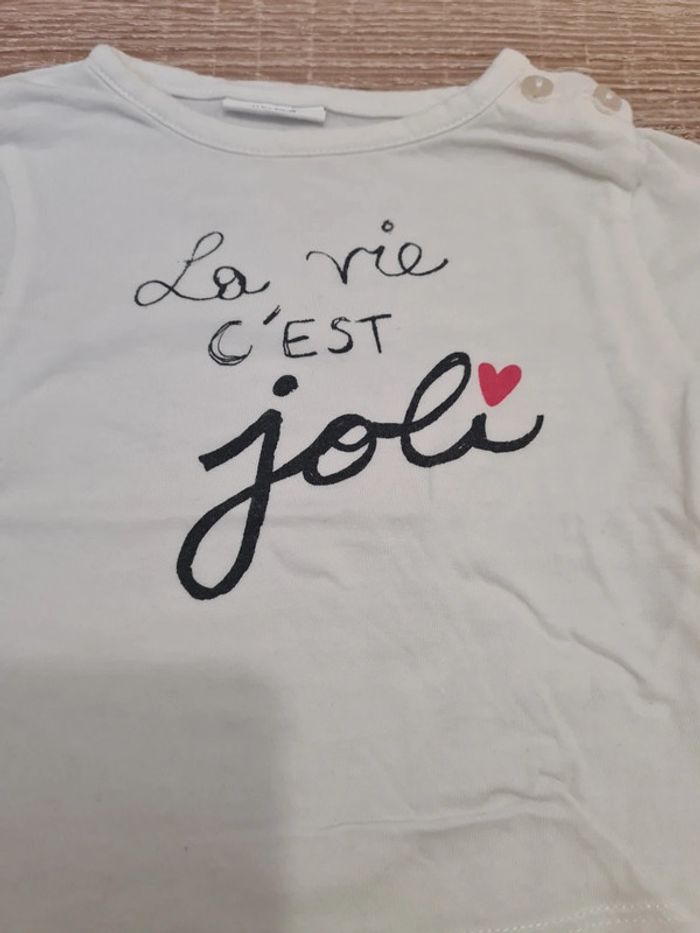 Tee shirt 3 mois "La vie c'est joli" Très bon état N'hésitez pas à jeter un œil au dressing 👉 fille de 1 à 6 mois 👉 garçon 1 mois à 5 ans 👉 vêtements de maternité #laviecestjoli #teeshirt #3mois #fille #coeur