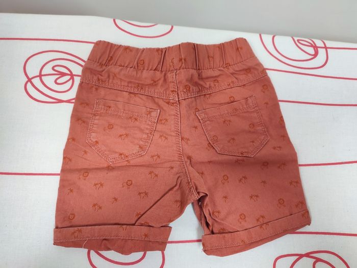 Petit short 18 mois Couleur terracotta, terre battue type terrain de tennis Motifs lion et petit palmier Taille réglable TAO tape à l'oeil État satisfaisant
