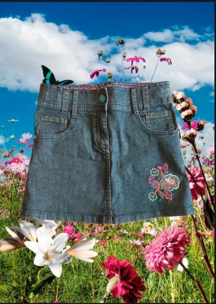 Jupe en jean brodé  fleurs taille 10 ans orchestra - photo numéro 1