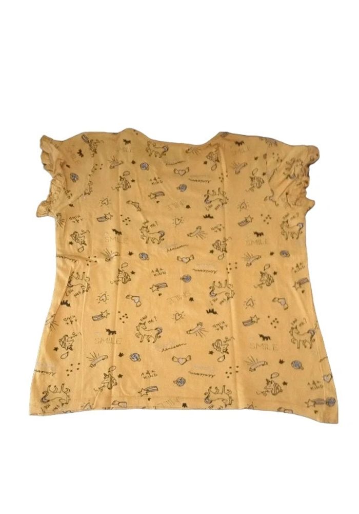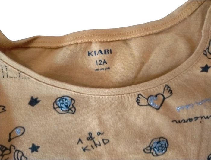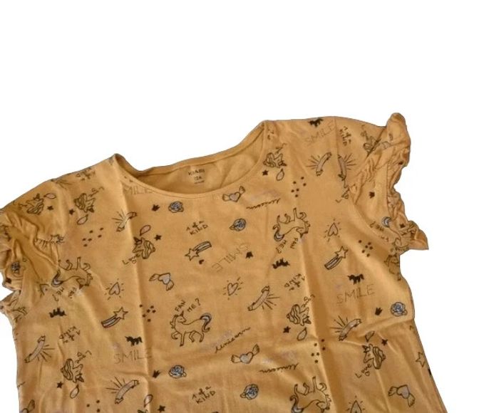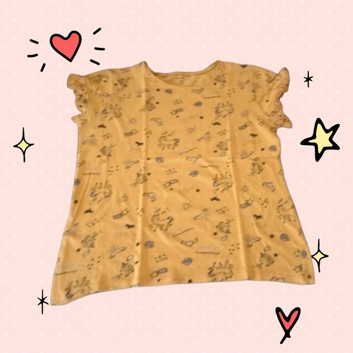 T-shirt manches courtes jaune. Imprimé licorne fleurs coeurs étoiles Taille 12 ans kiabi