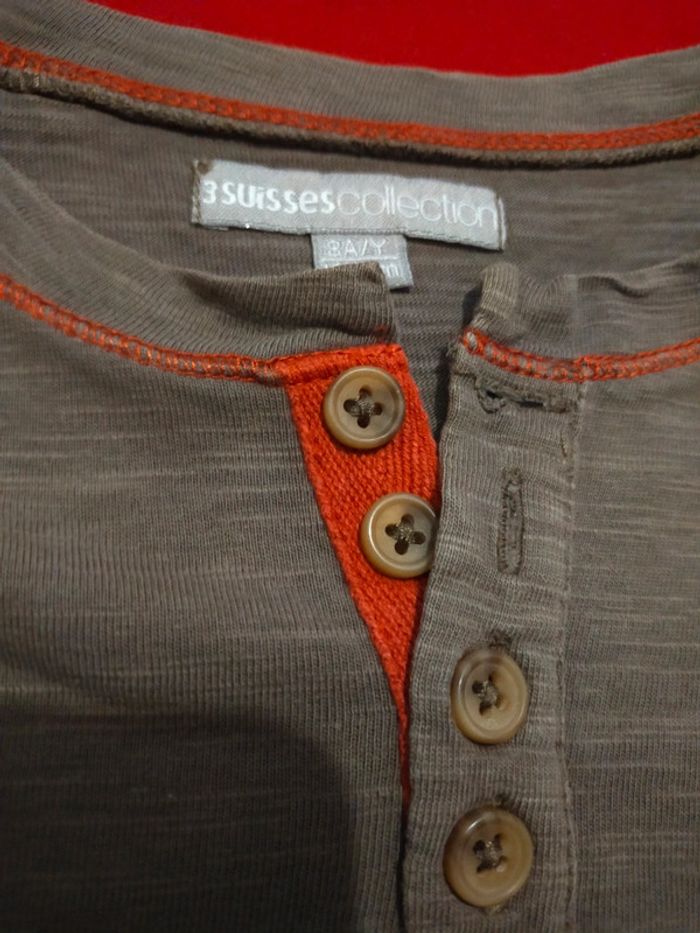 T-shirt manche longues Chiné marron gris Boutons au col Taille 8 ans 3 suisses 100% coton