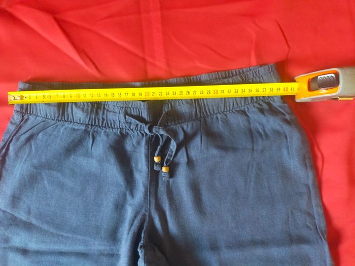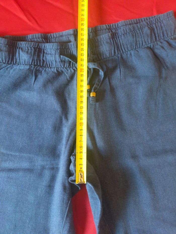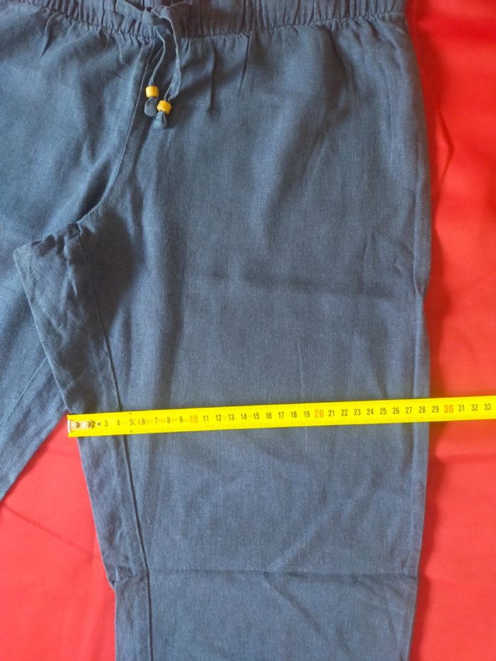 Pantalon bleu jambes large type coton lin taille 40 - photo numéro 8
