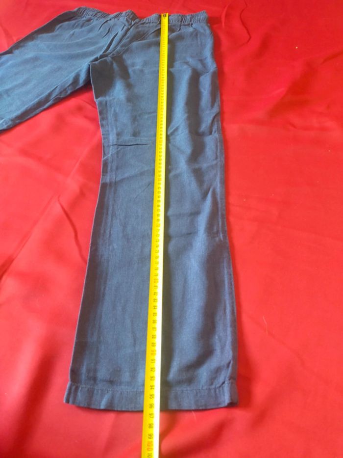 Pantalon bleu jambes large type coton lin taille 40 - photo numéro 5