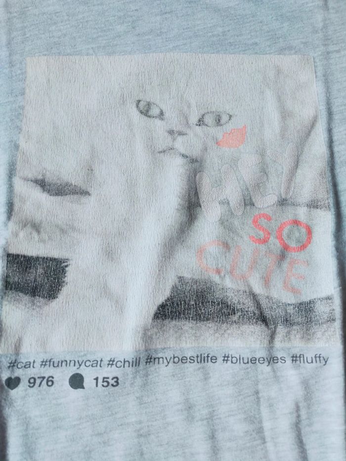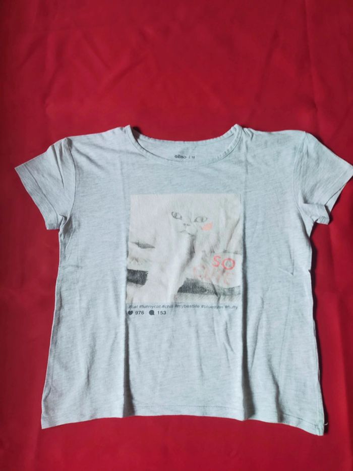 T-shirt manches courtes avec un chat blanc" So CUTE" Col rond Taille 12 ans gemo. Si besoin de renseignements hésitez pas a demandé. Réductions progressivement à partir de 2 articles