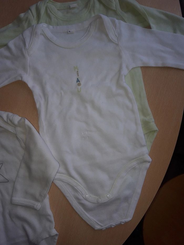4 bodies manches longues 3 sans marques et 1 verbaudet jauni à l'encolure