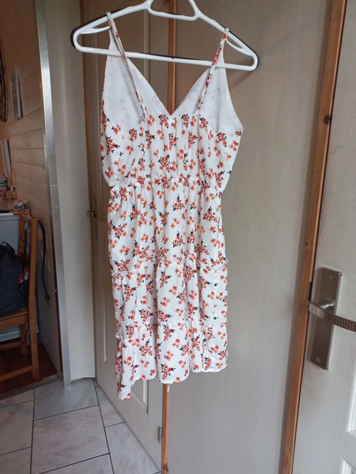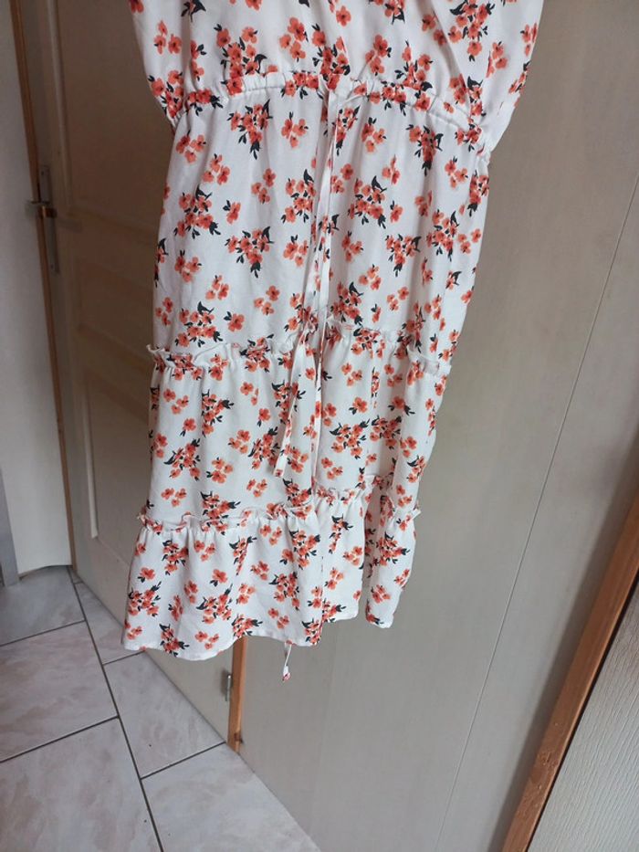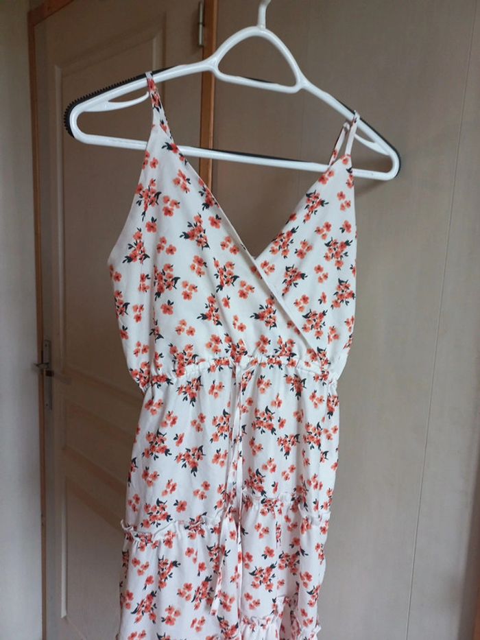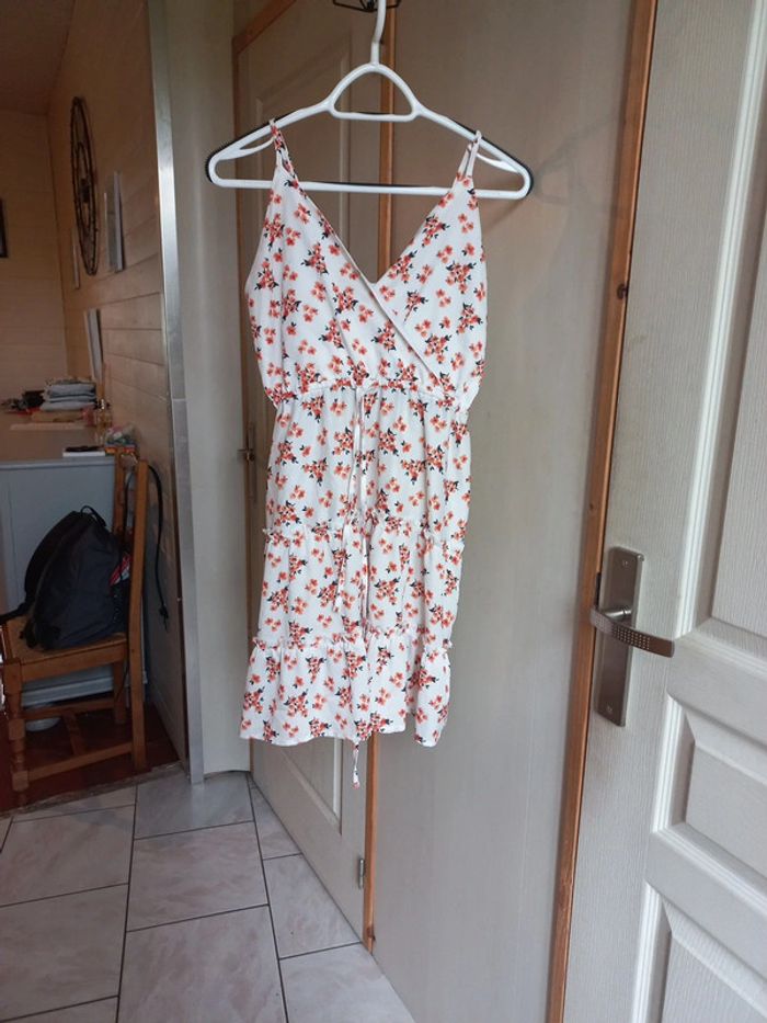 Robe blanche imprimée fleurs Taille M Bretelles réglables Lien à la taille