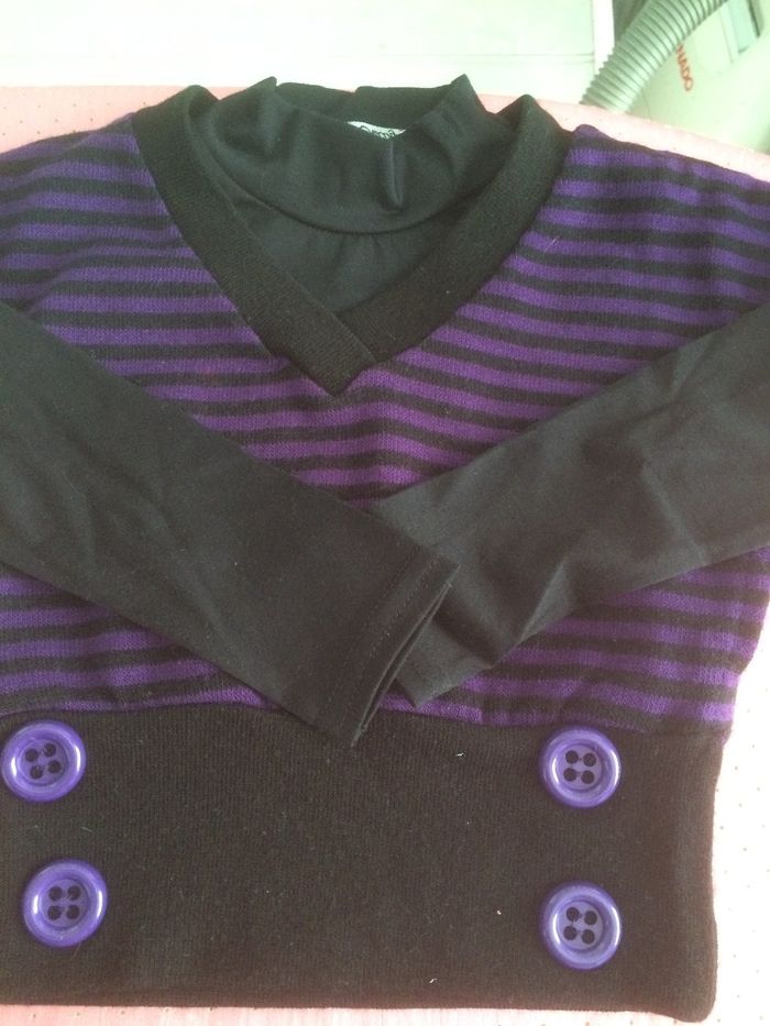 Bi matière entre les manches et le corps Petit pull court violine et noir Taille 5 ans #fille5_mondressing11_bv