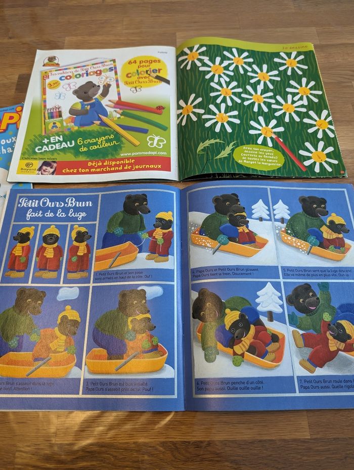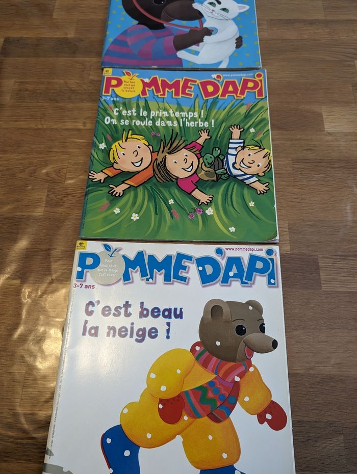 Lot de 3 revues Pomme d'api 3-7 ans Activités intactes, mais ont été manipulé, restent en bon état, voire mieux. Couverture un peu abîmée.