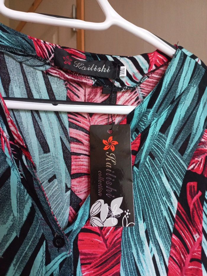 Robe fluide Manches longues Taille 50 Imprimée fleurs Neuve avec étiquettes