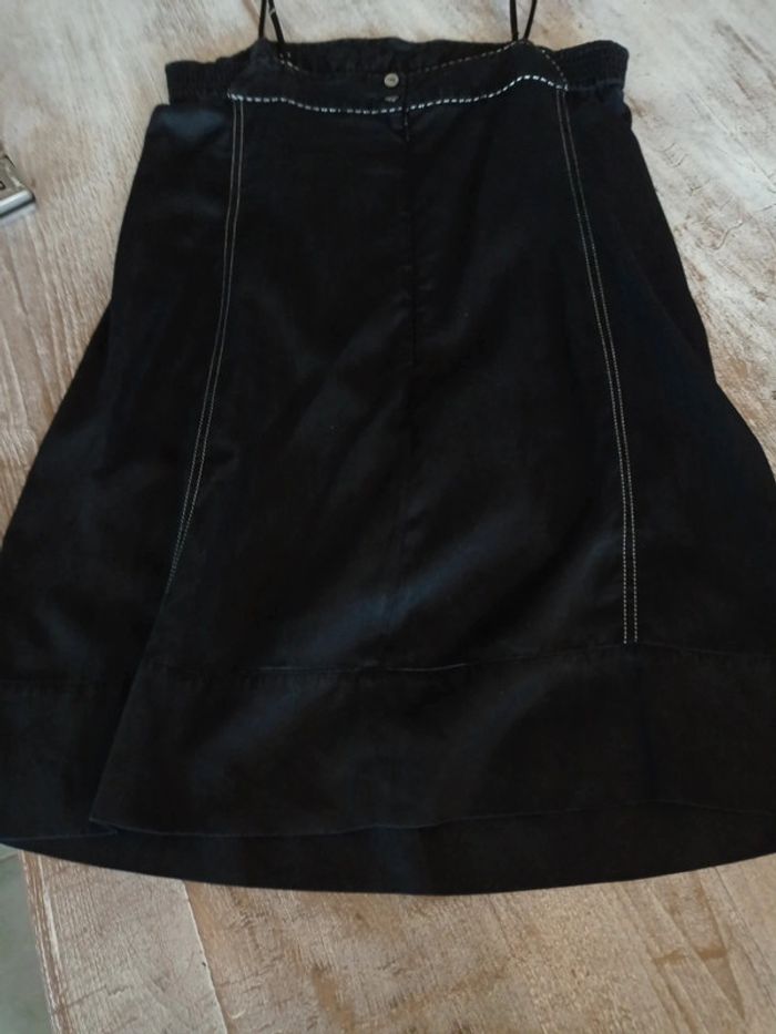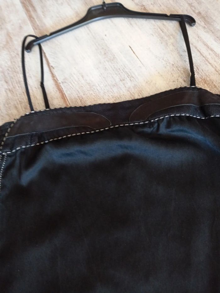 Très bon état Longueur totale, 80 cm Aisselles élastiques 42 cm Coupe trapèze Tissu satiné Jolies découpes devant soulignées par fil argenté