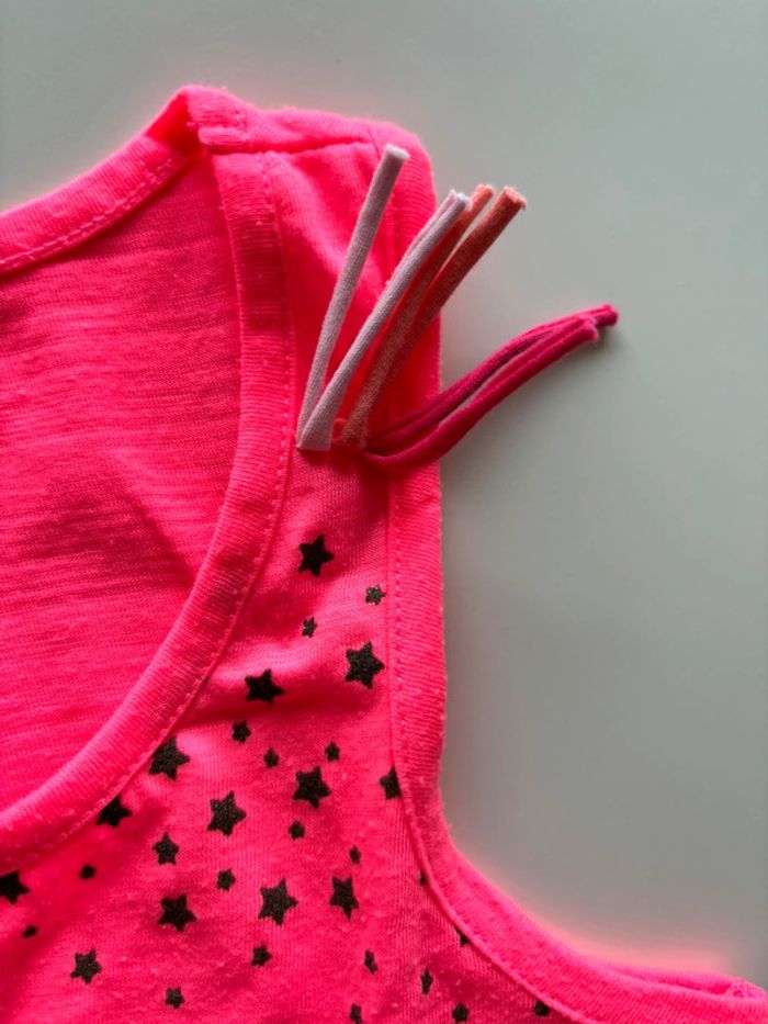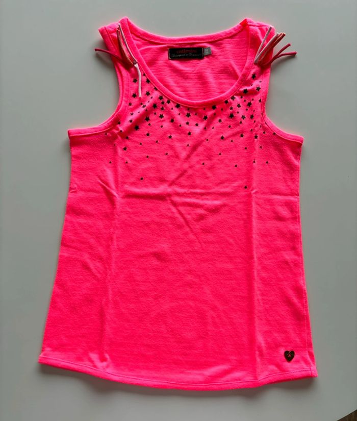 Débardeur rose catimini en très bon état avec des petites étoiles en haut du débardeur