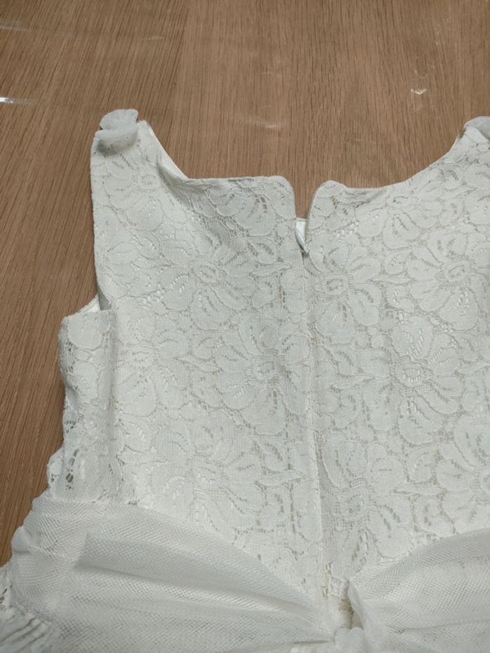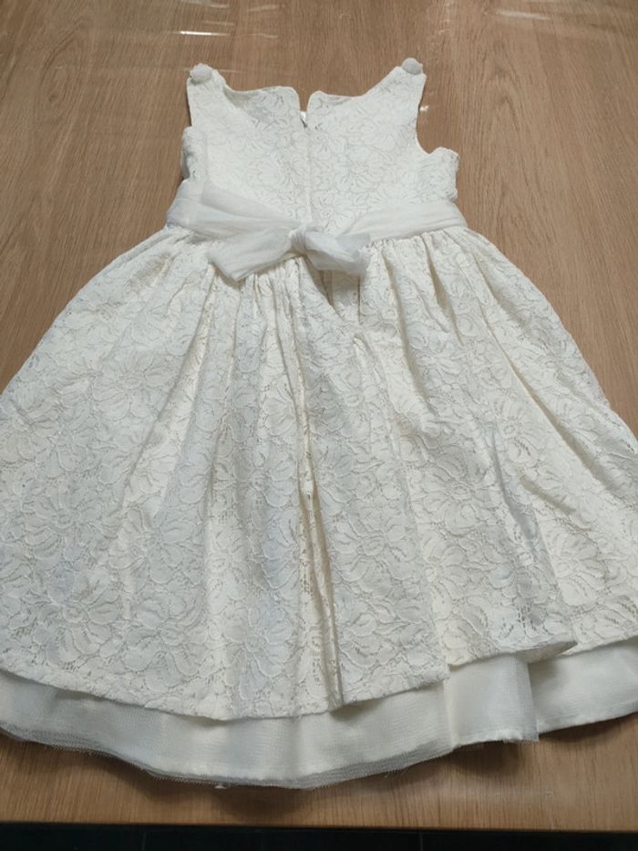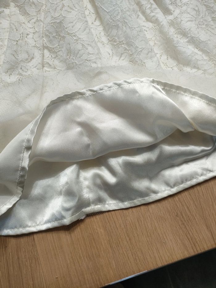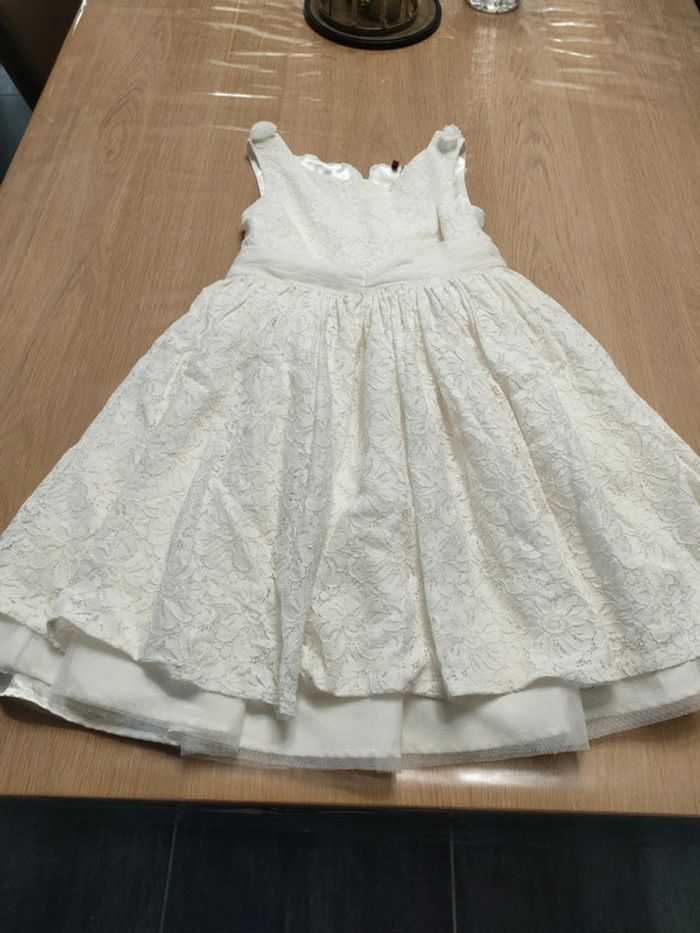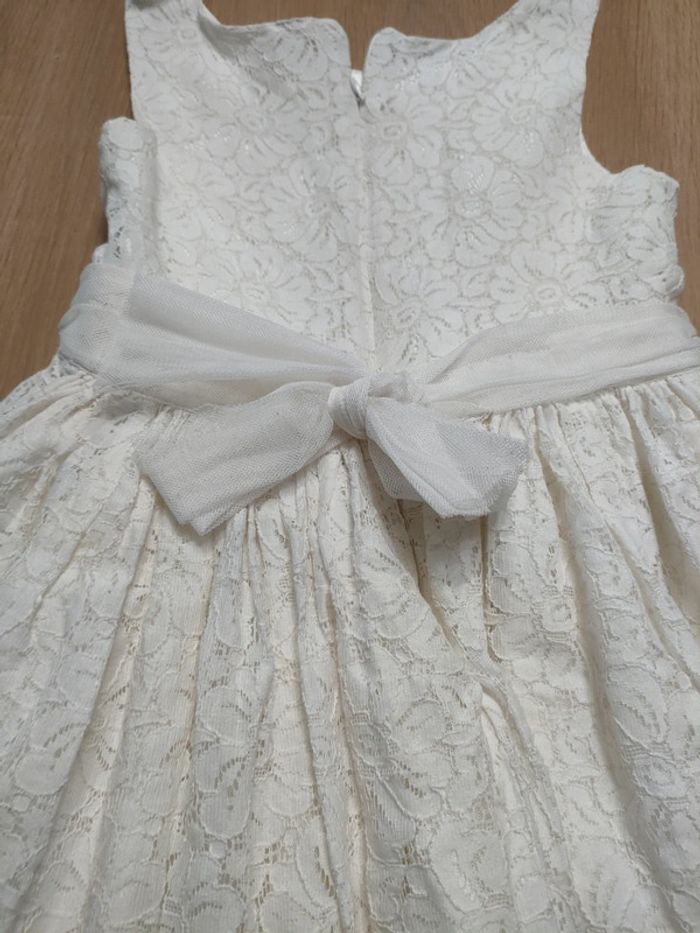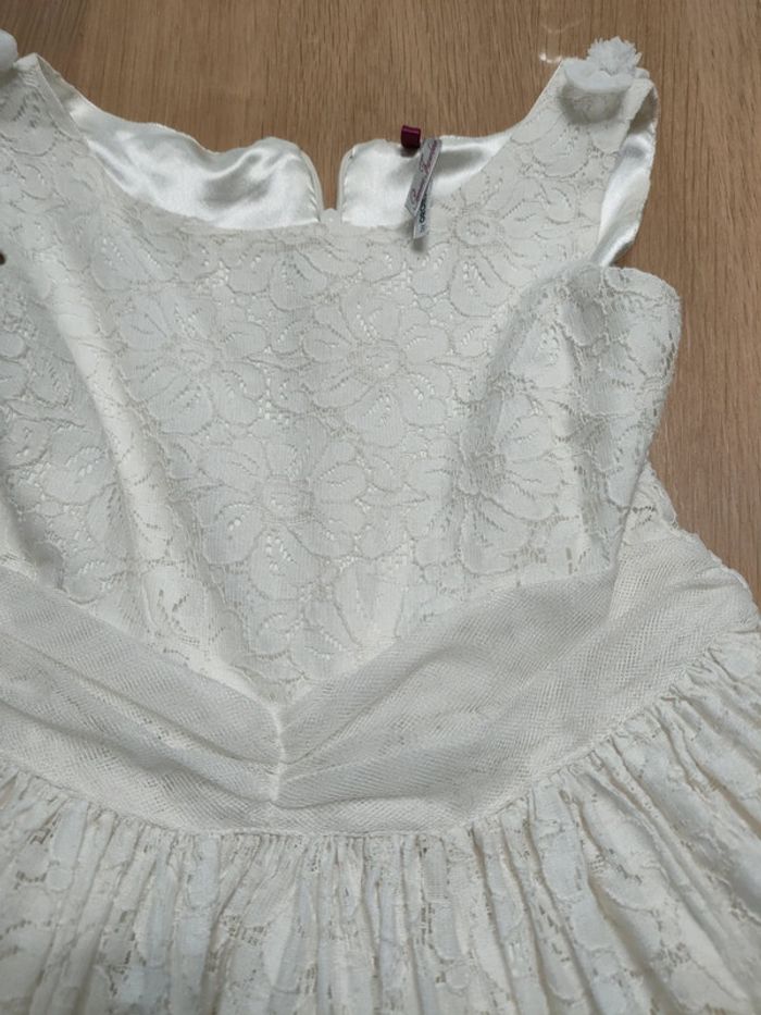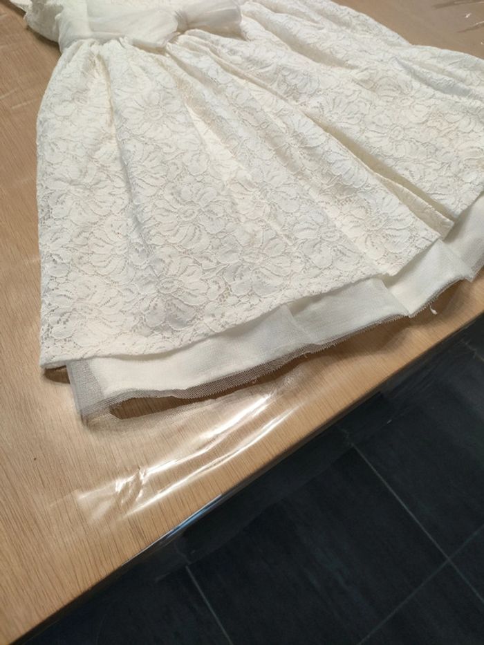 Robe dentelle blanche avec doublure satin. Noeud en tulle à la taille. Marque orchestra taille 8 ans.