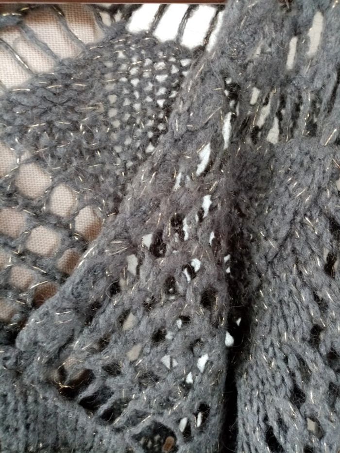 Pull gris maille Ajourée liserai or - photo numéro 2