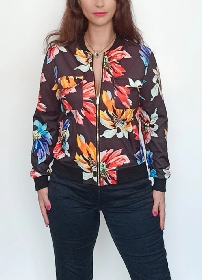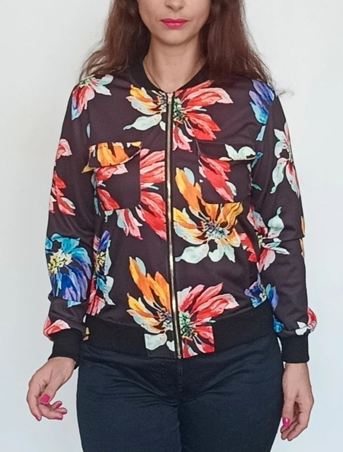 Blouson fin noir fleuri taille 36 - photo numéro 1