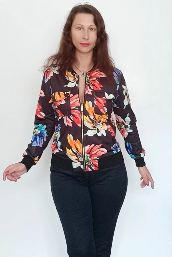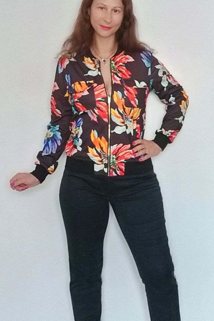 Blouson fin noir fleuri taille 36
