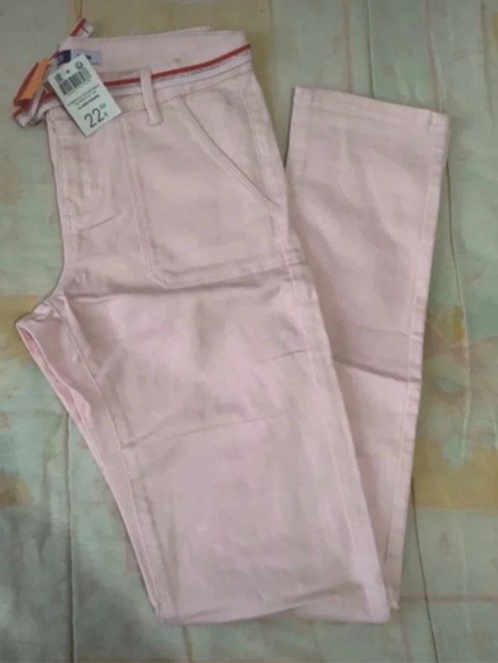 Jeans Okaidi 14 ans Rose avec ceinture Neuf
