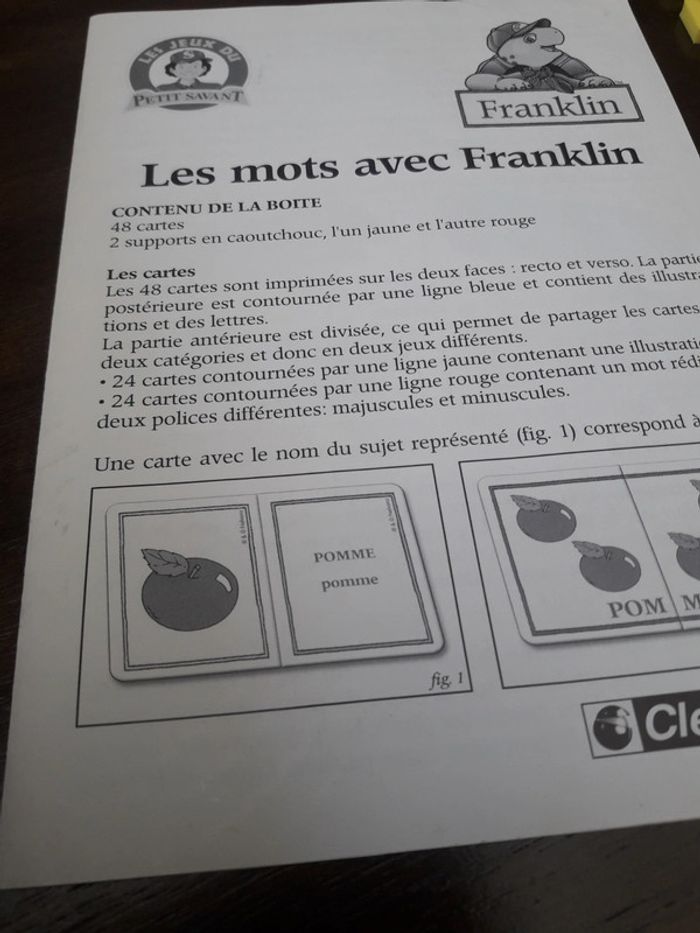 Les mots avec Franklin 48 cartes et 2 supports en caoutchouc très bon état marques d usure sur la boite à partir de 4 ans