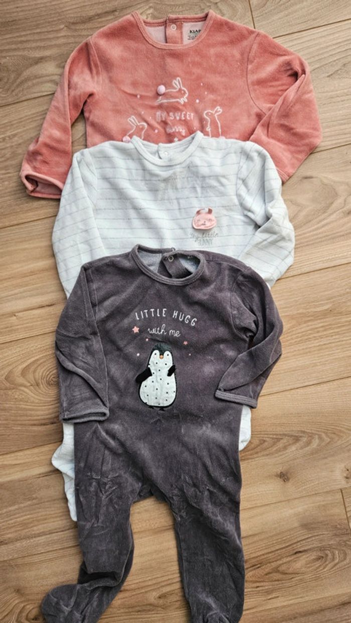 Lot de 3 pyjama chauds pour l'hiver en 24 mois de la marque Kiabi. Le blanc à une tâche au milieu. Je ne suis pas très douée pour détacher les vêtements.