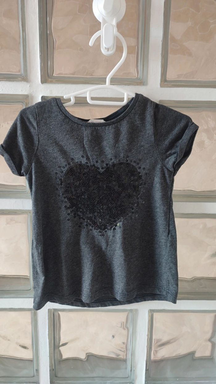 Tee-shirt h& m 2-4 ans , motif coeur en sequins #liloupinette_2ans #liloupinette_3ans #liloupinette_4ans