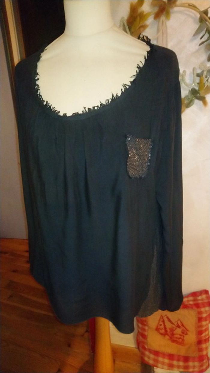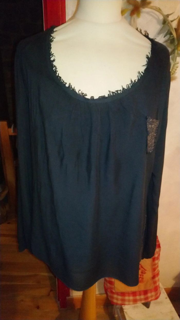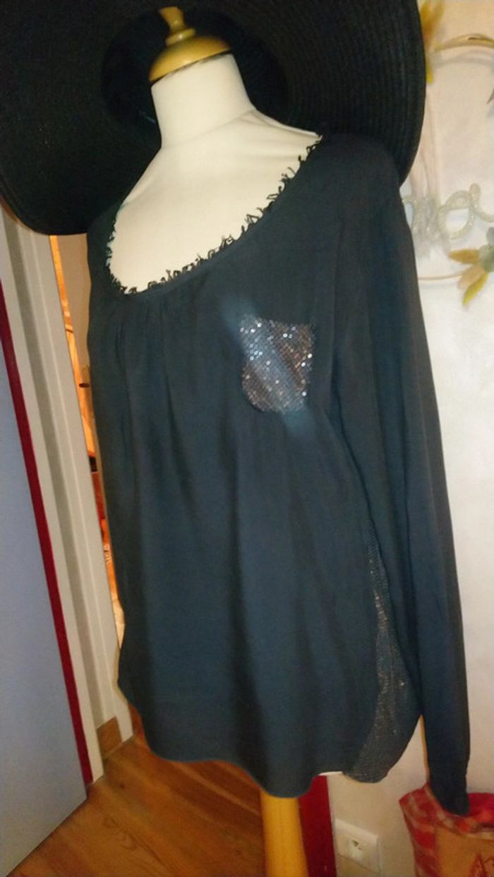 Joli haut noir avec strass sur la poche avant et sur les côtés Coupe légèrement évasée Doublé sauf au niveau des manches Marque made in Italy Taille unique #tailleunique #madeinitaly #lililesyeuxbleus3840 #lililesyeuxbleus4042