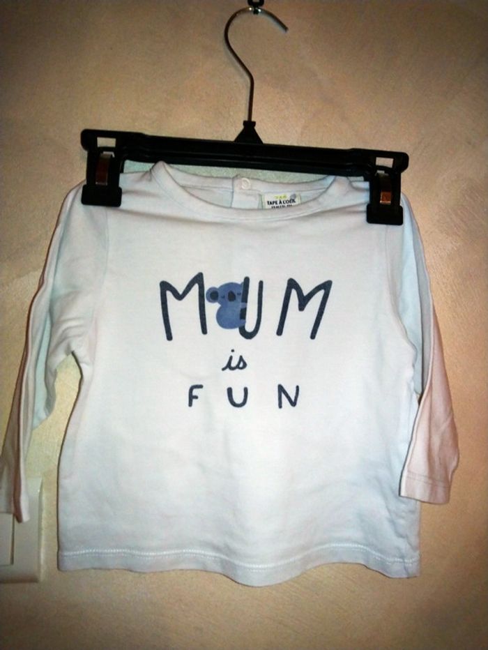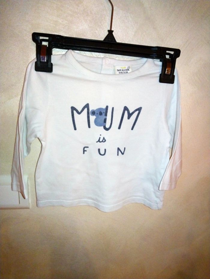 Tee shirt manches longues Tape à l'œil mum is fun taille 12 mois - photo numéro 1