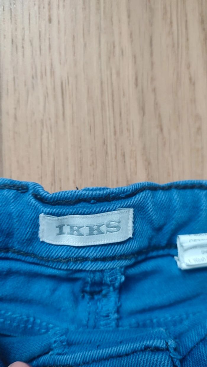 Jean IKKS 18 mois , bouton décoratif le pantalon s'attache avec le crochet , ajustable avec élastiques et boutons sur le côté . #liloupinette_18mois