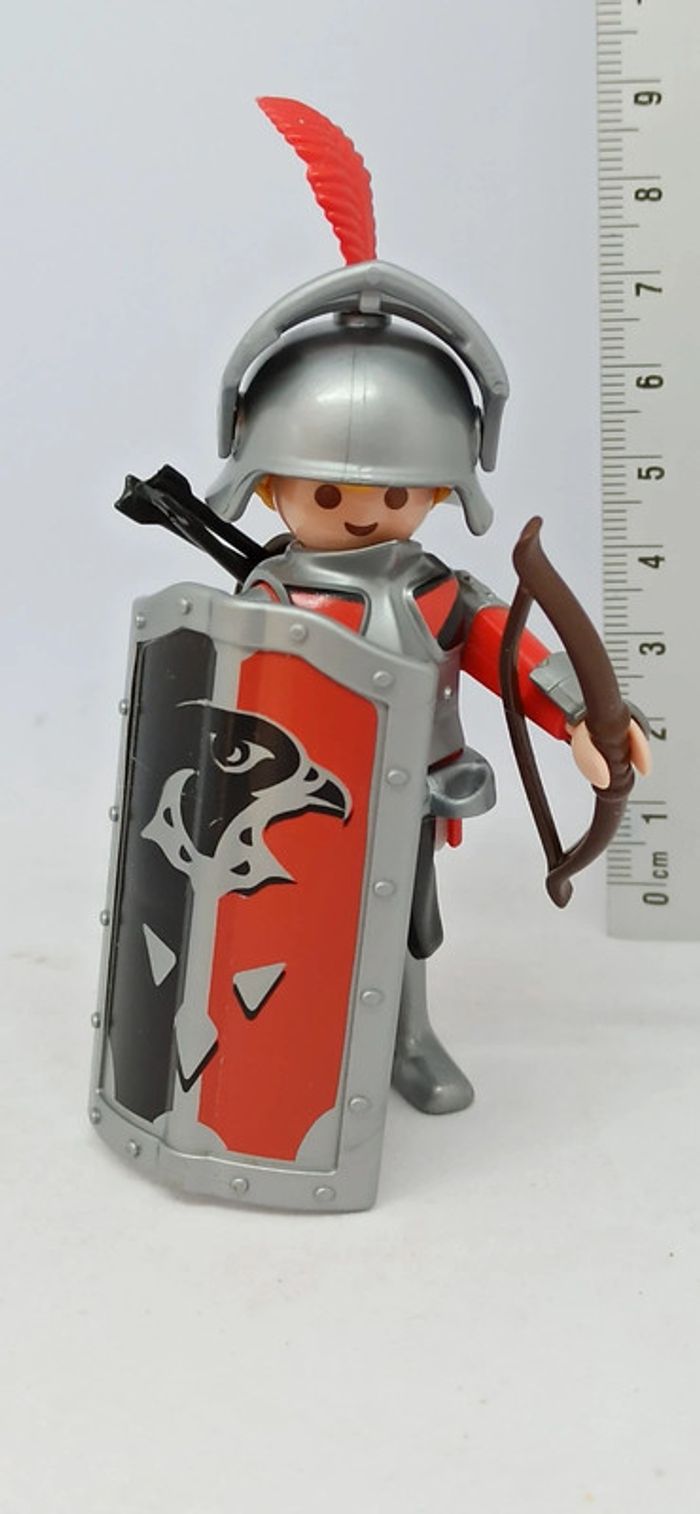 Homme chevalier motif faucon avec long bouclier et arbalète playmobil