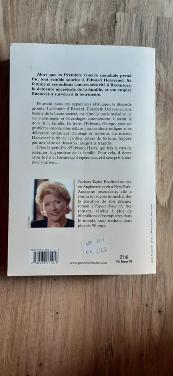 Alors que la Première Guerre mondiale prend fin, tout semble sourire à Edward Deravenel. Sa femme et ses enfants sont en sécurité à Ravenscar, la demeure ancestrale de la famille, et son empire financier a survécu à la tourmente. Pourtant, sous ses apparences idylliques, la discorde gronde. La femme d'Edward, Elizabeth Deravenel, une beauté de la haute société, est d'une jalousie maladive, et ses mensonges et bavardages commencent à ternir le nom de la famille. Le frère d'Edward, George, pose un problème encore plus délicat : sa conduite indigne et sa déloyauté entraînent chantage et trahison. La maison Deravenel subit de terribles revers de fortune, frappée par une série de désastres, jusqu'à la tragédie. C'est le petit-fils d'Edward, Harry, qui fera le voeu de restaurer la grandeur de la famille. Pour cela, il devra avoir le fils et héritier qu'il espère tant, et il sera prêt à tout pour y arriver...