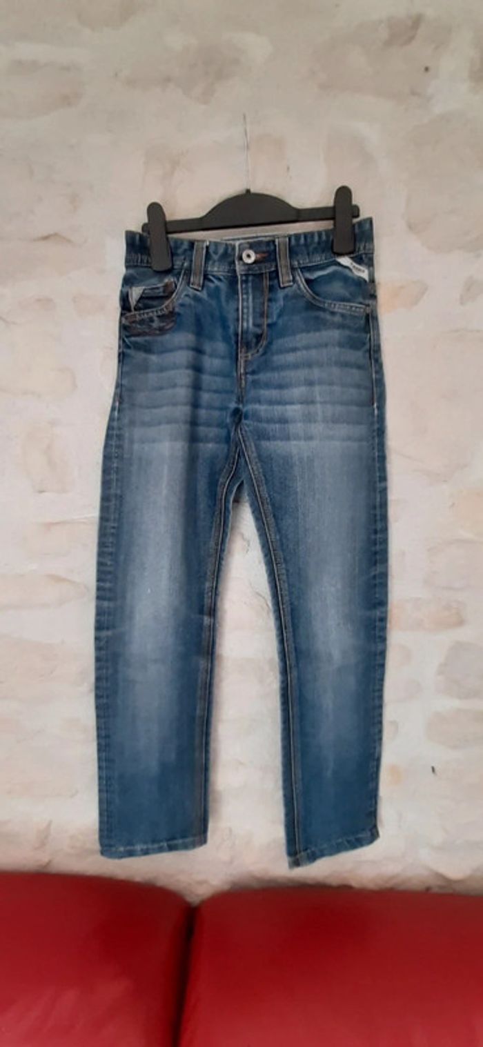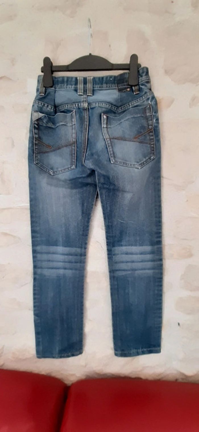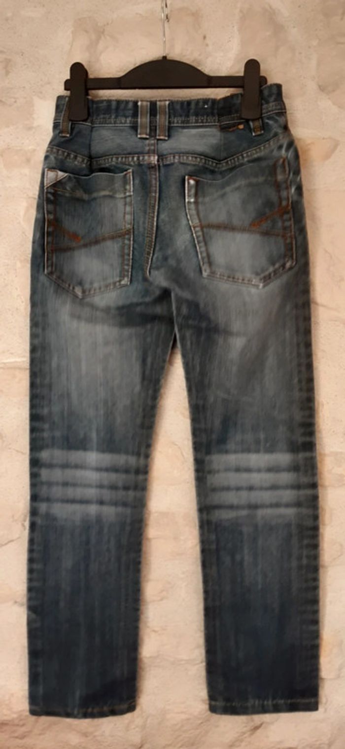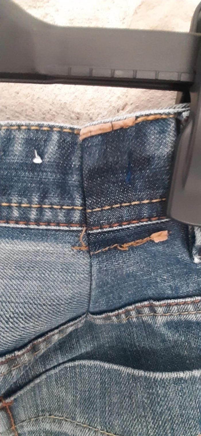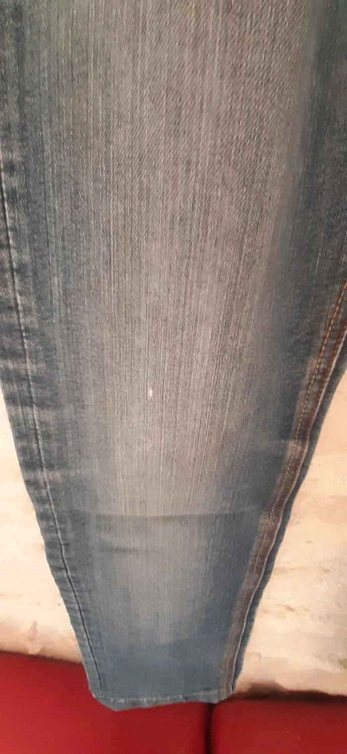 Porté Des traces d'usures qui vont avec le style du jean. Repris à la taille (ca peut se découdre facilement si besoin).