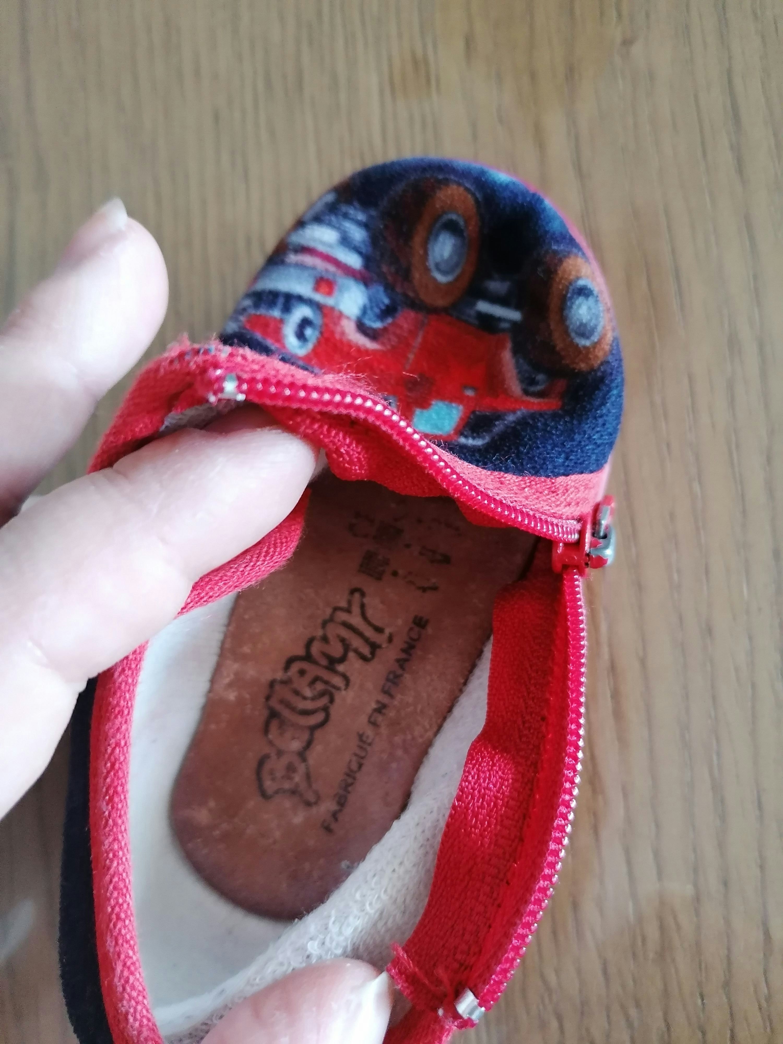 Semelle cuire Fermeture zippée Maintient du pied avec voute plantaire. Chausson porté mais peut encore faire le bonheur de vos bambins. Très bon état.