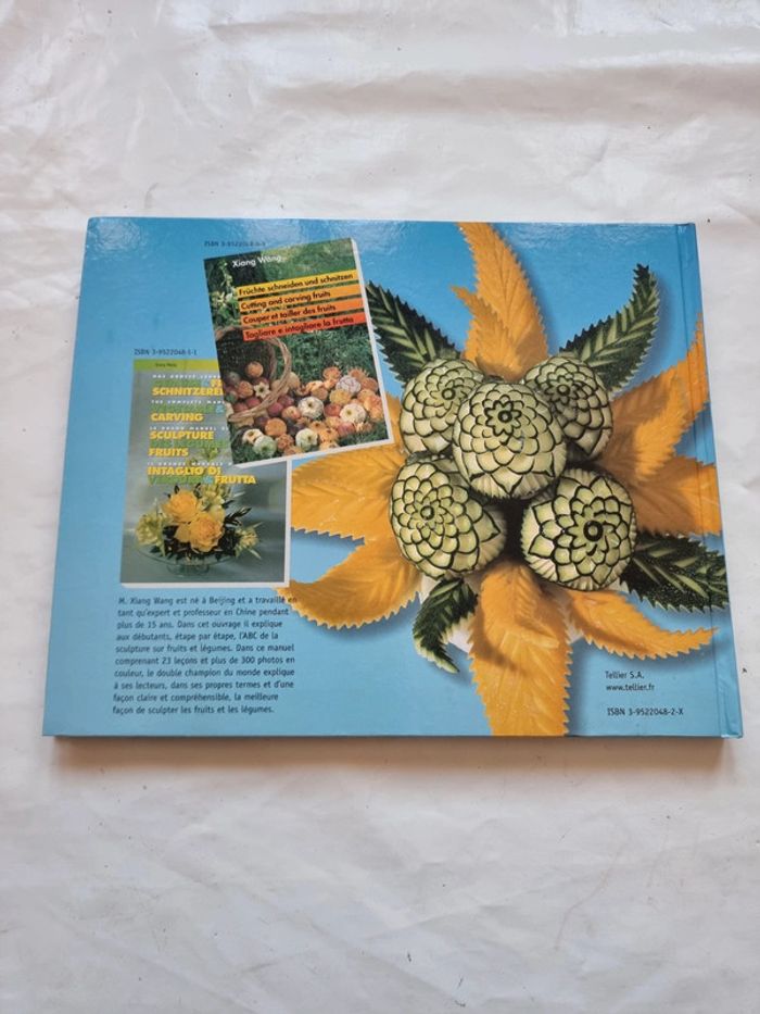 L'ABC de la sculpture sur fruits et légumes Xiang Wang Livre broché En très bon état M. Xiang Wang est né à Beijing(Pékin 😉) et a travaillé en tant qu'expert et professeur en Chine pendant plus de 15 ans. Dans cet ouvrage il explique aux débutants, étape par étape, l'a b c de la sculpture sur fruits et légumes. Dans ce manuel comprenant 23 leçons et plus de 300 photos en couleur, le double champion du monde explique à ses lecteurs, dans ses propres termes et d'une façon claire et compréhensible, la meilleure façon de sculpter les fruits et légumes. #angel_livre_adulte_cuisineetjardin