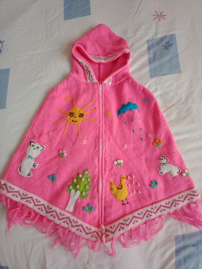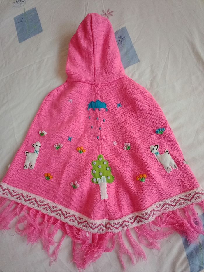 poncho rose à capuche fabriqué main 6-10ans - photo numéro 1