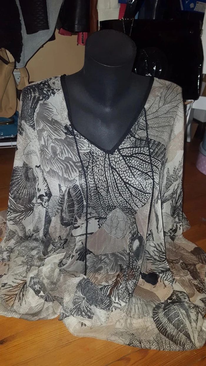 Poncho blouse à motifs beige clair transparent H&M T38 TBE 🌞 - photo numéro 5