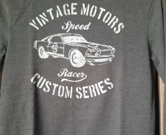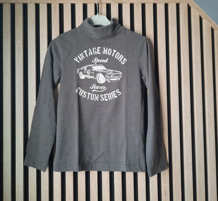 Pull col roulé col montant gris 8 ans Gris imprimé blanc vintage motos #clementine13430garçons8ans #colroule8ans #pull8ansgarcon