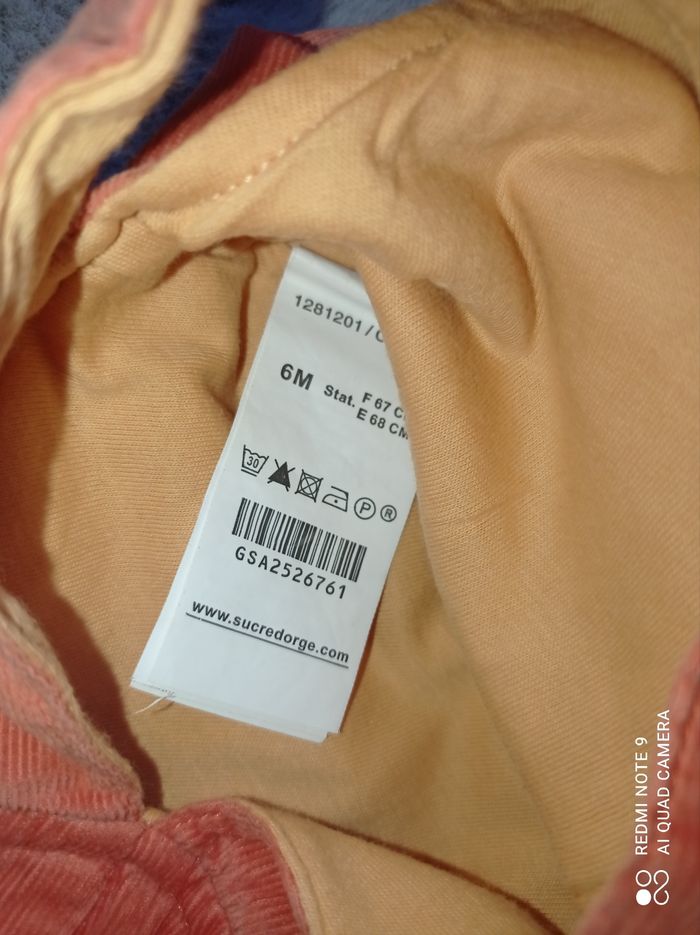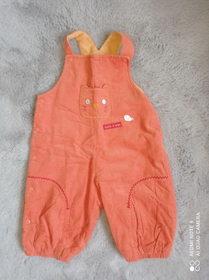 Salopette en velours doublée, Sucre d'orge, taille 6 mois NEUVE