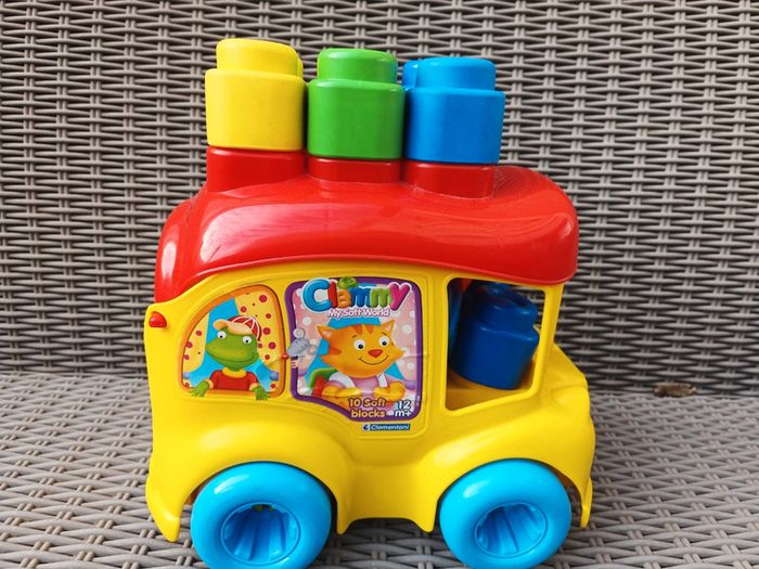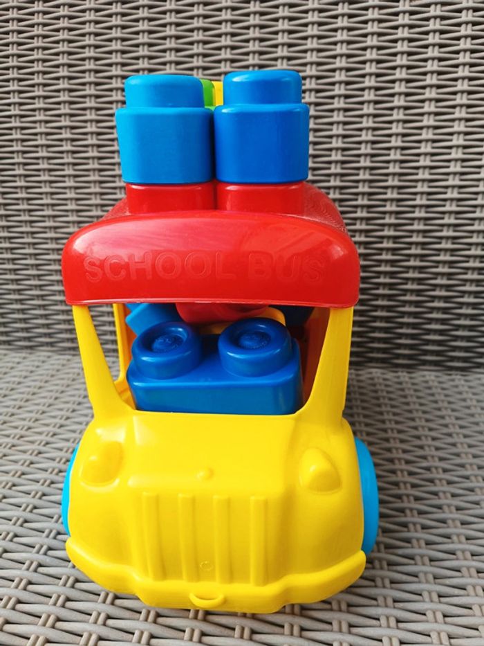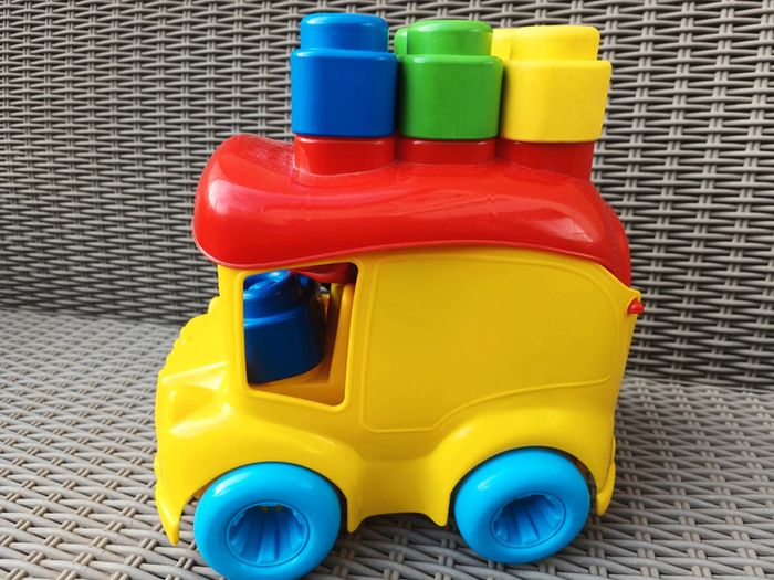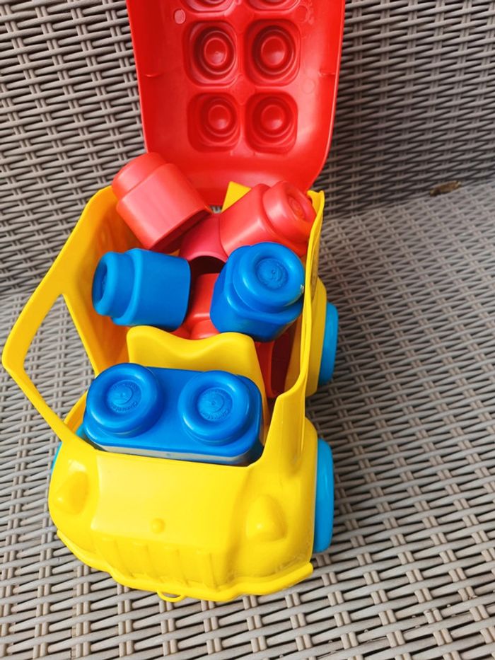 Camion avec Legos souples Idéal pour premières construction, ou pour jeux de bouche Bon état général Manque les autocollants sur le devant et un côté du camion.
