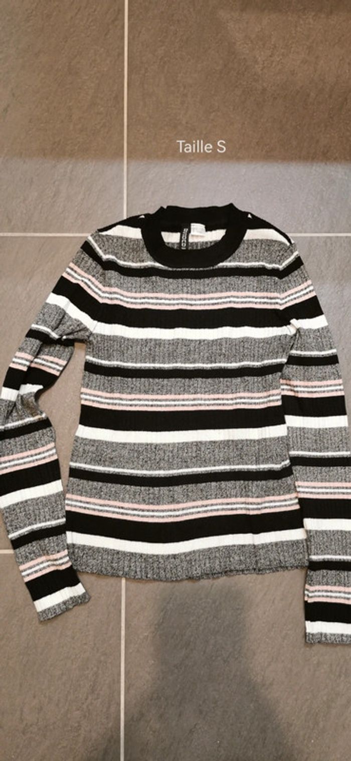 Pull léger taille S Tbe général Rayures gris, noir, rose, blanc