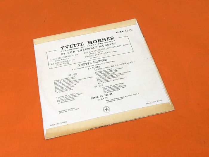 Vinyle 45 tours Yvette Horner (1956) C' est magnifique Pathé 45 EA 56 A1 C'est Magnifique Écrit par – Cole Porter A2 La Grenouille Écrit par – Rudi Revil B1 Les Lavandières Du Portugal Écrit par – André Popp B2 Prière Péruvienne Écrit par – Gomera *