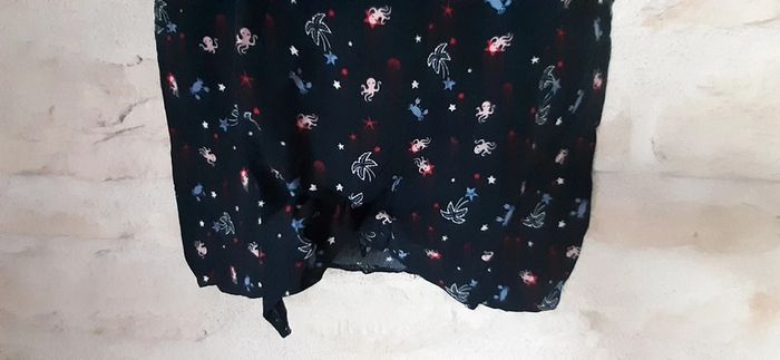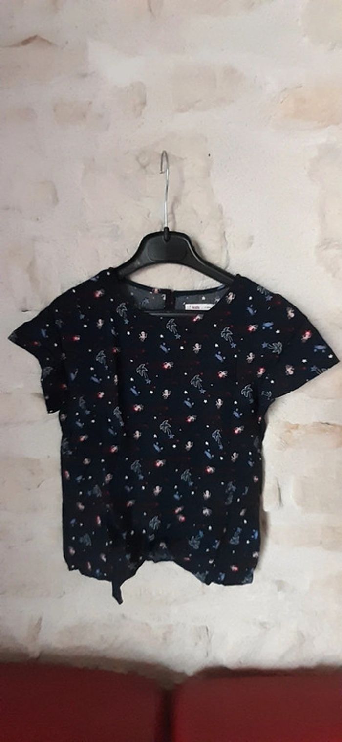 Très girly à nouer en bas et fermeture par un bouton à l'arrière. Un des Tee-shirt préféré de ma fille Agréable à porter