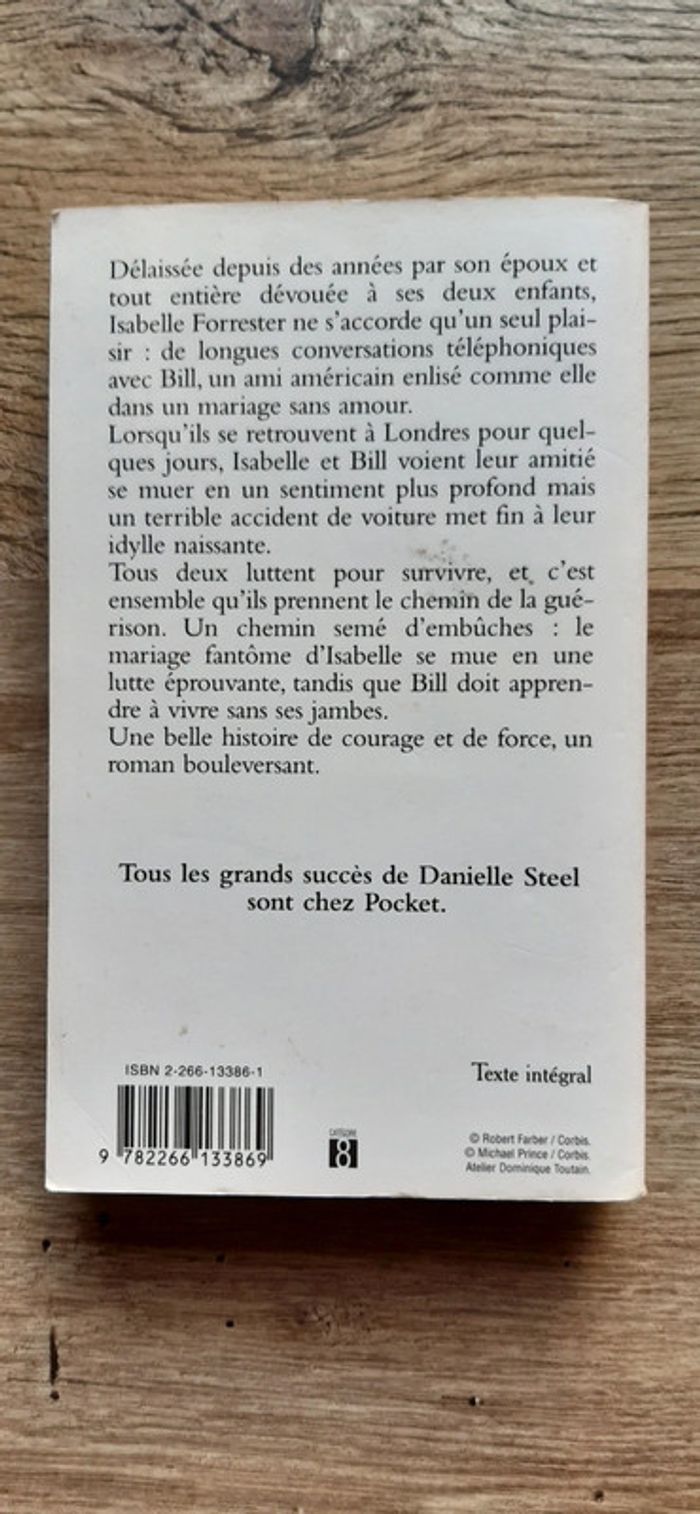 Délaissée depuis des années par son époux et tout entière dévouée à ses deux enfants, Isabelle Forrester ne s'accorde qu'un seul plaisir : de longues conversations téléphoniques avec Bill, un ami américain enlisé comme elle dans un mariage sans amour. Lorsqu'ils se retrouvent à Londres pour quelques jours, Isabelle et Bill voient leur amitié se muer en un sentiment plus profond mais un terrible accident de voiture met fin à leur idylle naissante. Tous deux luttent pour survivre, et c'est ensemble qu'ils prennent le chemin de la guérison. Un chemin semé d'embûches : le mariage fantôme d'Isabelle se mue en une lutte éprouvante, tandis que Bill doit apprendre à vivre sans ses jambes. Une belle histoire de courage et de force, un roman bouleversant.