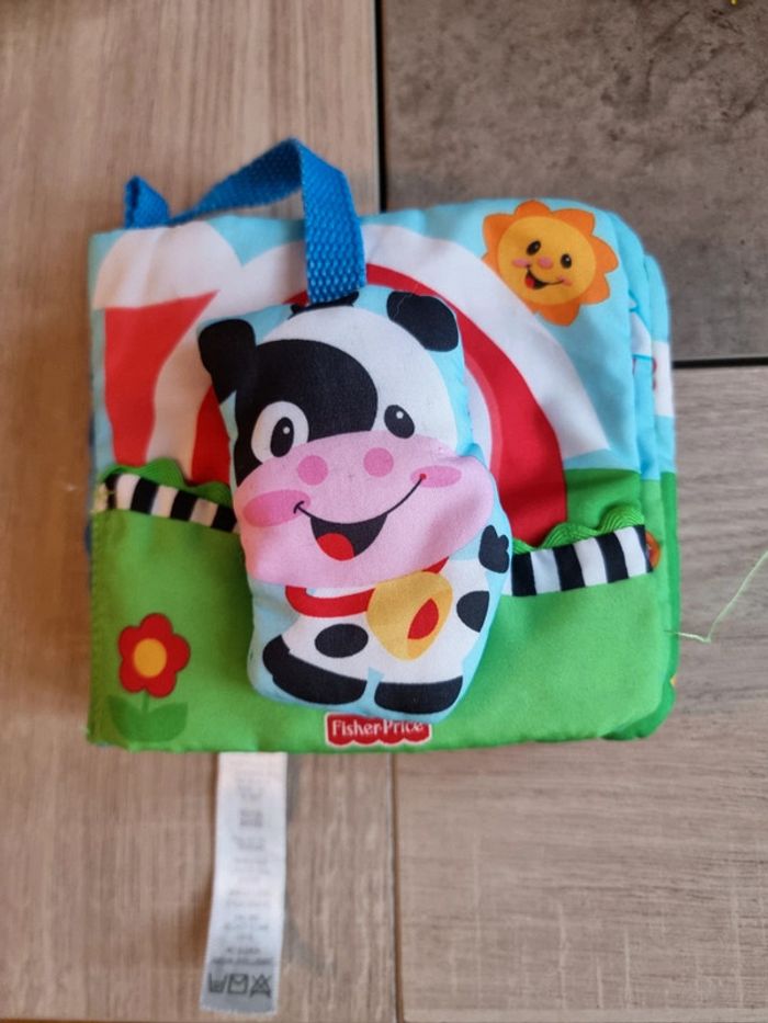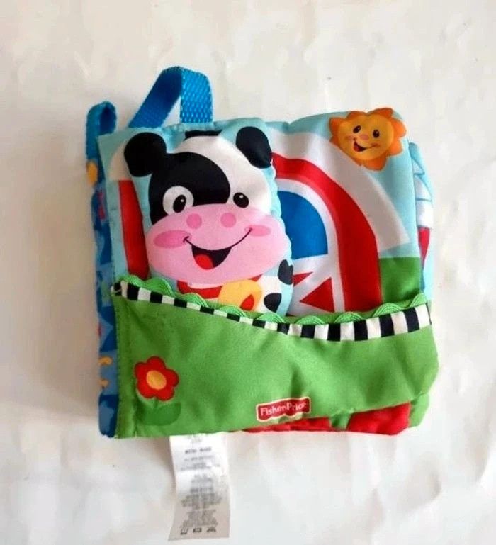 Livre en tissus Animaux de la ferme Fisher Price Avec différentes sensations, livre à toucher, cache cache (volets), et clochette Très bon état #angel_livre_bébé_tissus