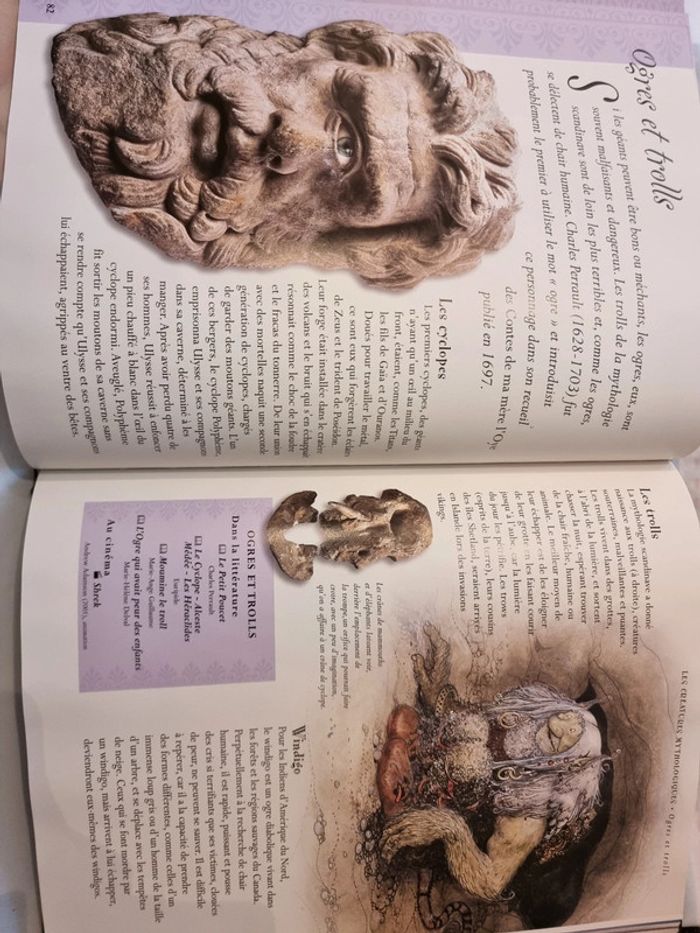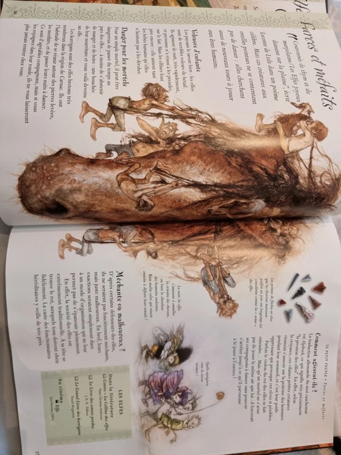 L'encyclopédie de la fantasy Dans le monde des créatures imaginaires Judy Allen Cette encyclopédie rassemble les êtres nés de l'imagination des hommes, de l'antiquité à nos jours sirènes, trolls, sorcières, lutins, yéti, vampires, loups- garous 9 chapitres passionnants démontent le mécanisme de leurs étranges pouvoirs, de leur vie souvent extraordinaire et de la fascination qu'ils exercent sur nous tous. Dans chaque chapitre sont regroupés les êtres de la même famille. Chaque double page met l'accent sur une créature en particulier, sur ce qu'elle représente et sur les anecdotes qui l'ont rendue célèbre. De forêts en cimetières, de lieux enchantés en océans fabuleux, d'iles paradisiaques en repaires cachés, ce sont des mondes mystérieux qui s'entrouvrent ... ceux de créatures changeantes, entre séduction et cruauté En très bon état
